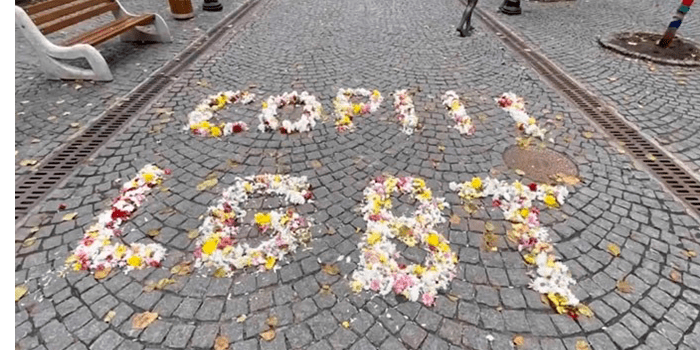 Secondly, we made an art-object from flowers that said “LGBT Children” on the central street of Chisinau (because in our country there is a proverb which says that children are the flowers of life).