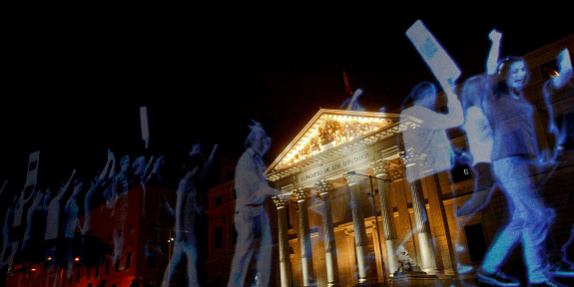 In Spain, when the Spanish Parliament outlawed protests, No Somos Delito, or NSD, created the world’s first holographic protest march. “The law is surreal — so surreal that it drove us to do something equally surreal, “ said Carlos Escaño of NSD. “It’s about art, about going to a place beyond discourse. It’s about touching emotion.” Beyond that, though, it is about defying citizen security laws in a way that both protects civil society and fights the surreal with surreal.