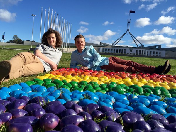 In Australia, students made a giant rainbow flag made out of 1,000 potatoes.