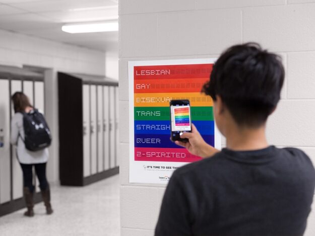 Great example of how to use innovative technology to catch young people’s attention! From the Advocate PFLAG Toronto has come up with a way of getting its message to schools — at least to those who know how to read it. The group’s innovative new campaign uses posters that reveal a hidden pro-LGBT message only when students…