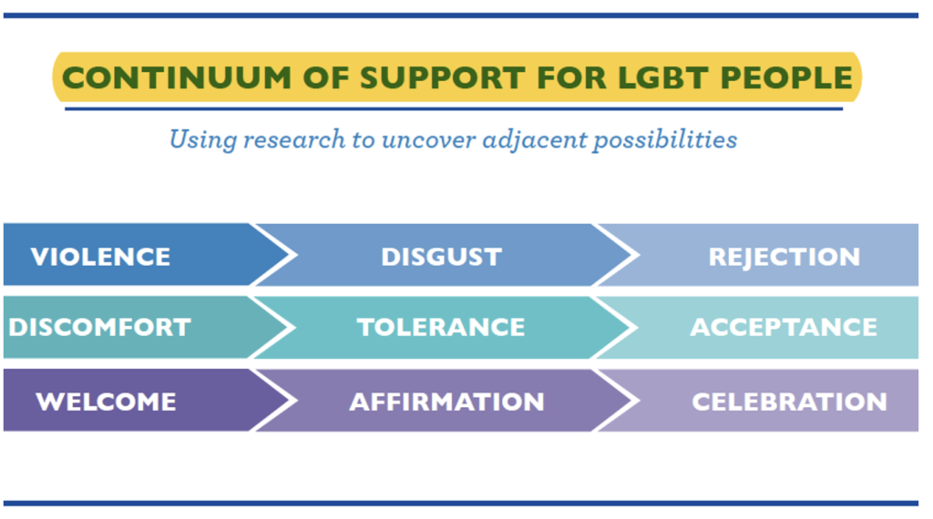 The continuum of support theory indicates that attitude change has to follow a certain pathway and that a campaign can’t hope to get its audience past one or two of these degrees.