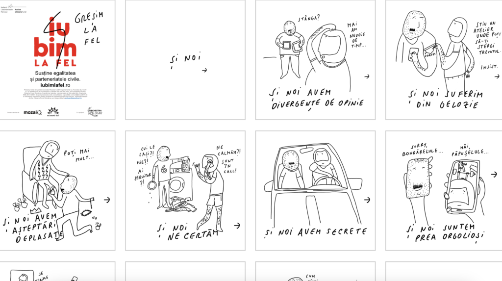 Maximilian A., MozaiQ’s communication officer, stated, “We really loved this aspect because it highlights the diversity not only within the LGBTQ+ community but also in the range of opinions across Romanian society. For example, this campaign uses figures and data, which is something that is not usually advised in communication, so it was very interesting to see that the people from advertising decided to do this.”