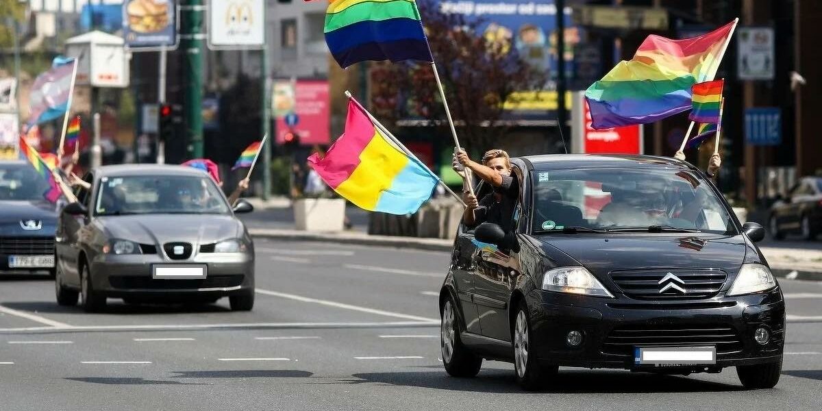 Nevertheless, there was some real-life action when members of the Bosnian LGBTQI+ community symbolically marked the day by driving through the city in cars, promoting the message We exist, we live in this country, we demand laws, protection, and security.