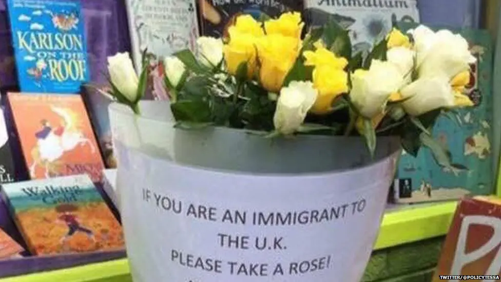 Flowers can be used to say many things—to apologise, to wish joy, to congratulate—but in this context, flowers are a symbol of solidarity. After the Brexit vote in the UK, flowers were put out for immigrants to take as a show of solidarity and support when tensions were heightened, many were unsure and frightened about their future.